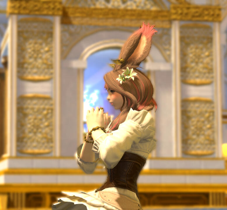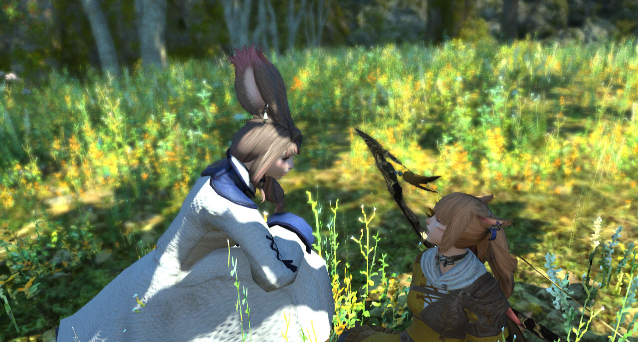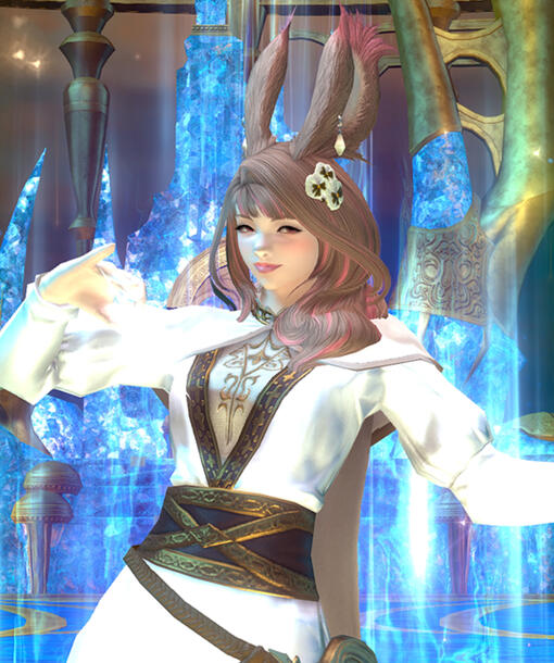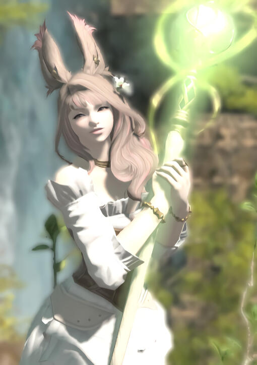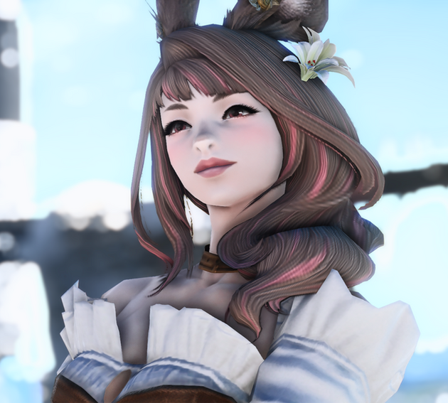 she journeyed to eorzea a few years before the calamity as garlemald's grip on othard grew stronger. gridania became her new home, and because of her desire to care for and protect people, she learned the art of white magic, which was relatively easy for her due to her innate connection to nature. she enjoys tending to plants and flowers, and excelled in botany early in her stay in gridania.